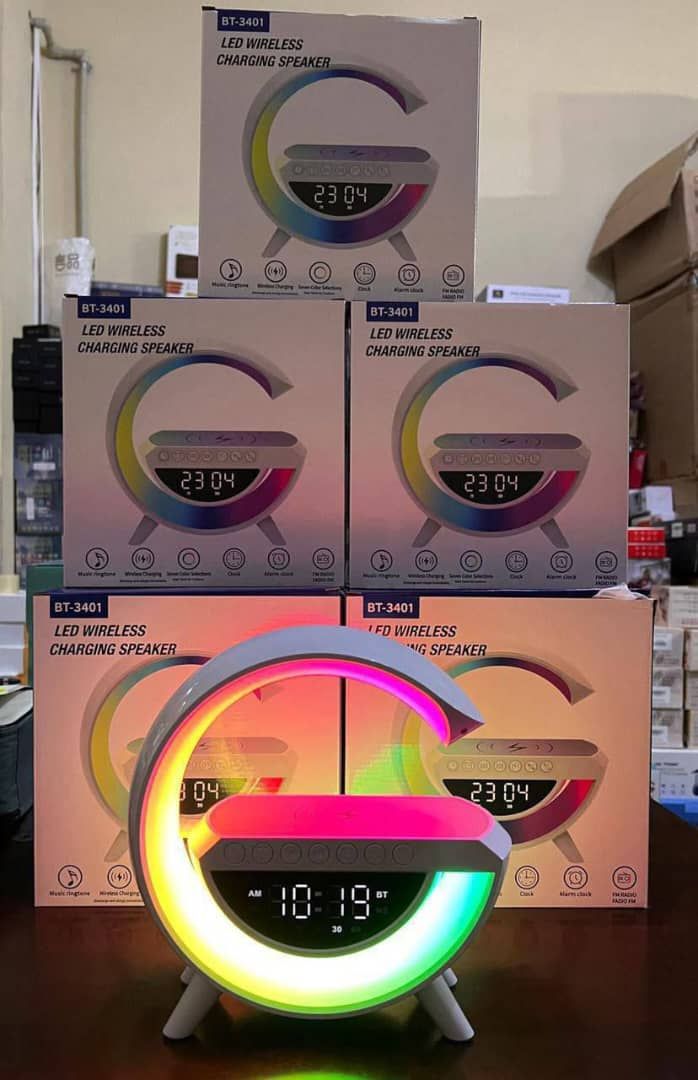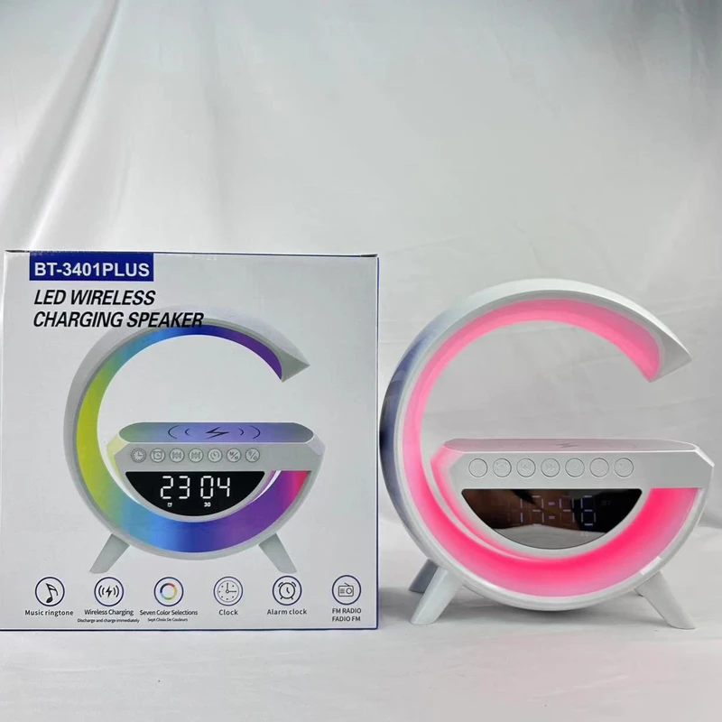 شارژر بی سیم وایفایدار (orginal )مخصوص موبایل و چراغ رومیزی اسپیکر دار BT-3401 15WBT-3401 15W Desktop Wireless Charger with Speaker & Night Lampاتصال بی سیم از طریق بلوتوث نسخه 5.3 با برد 10 مترواتصال با سیم از طریق رابط جک 3.5 میلی متری صداامکان پخش فایل های ذخیره شده با پشتیبانی از درگاه های USB و Micro SDامکان استفاده به عنوان چراغ خواب با دارا بودن نورپردازی RGBبهره گیری از یک جایگاه جهت شارژ وایرلسبرخوردار از ساعت دیجیتال و مجهز به آلارم بیدار باش